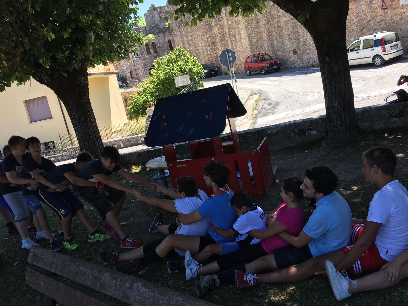“Stamattina in paese si era sparsa la voce della nostra presenza, ci attendevano con ansia”. Lo racconta il Clan pugliese del Sava 1, salito in Umbria dalla provincia di Taranto per prendere parte alla Route “Tra Terra E Cielo”. Sono sul percorso 1b, quello che da Cerreto li riporterà a Spoleto, dove il Clan è stato accolto sabato insieme agli altri in Route nella prima settimana del 15-22 luglio. Tappa di partenza proprio Cerreto, dove i Rover e le Scolte del Sava 1 sono giunti domenica: “Arrivati alla struttura dopo aver attraversato il borgo e conosciuto gli abitanti – racconta il Clan ci siamo organizzati per una animazione serale nella piazza del paese. Per la cronaca la partita di calcio tra Orsa Maggiore e Cerreto è finita con il risultato 15-14 e la piccola Ludovica nominata nostra mascotte. Tutti gli abitanti del paese in qualità di felici spettatori si sono piacevolmente divertiti e ci hanno ringraziato per aver portato un po’ di vita e di allegra confusione in questo borgo quasi abbandonato”. Lunedì il paese era quindi in fibrillazione per la presenza del Clan, salutato con simpatia e disponibilità anche dal Sindaco Luciano Campana. La giornata è proseguita con altri giochi scout tipici (cipolla e contadino) insieme ai bambini del posto che ormai hanno familiarizzato: “I ragazzi ci raccontano sempre del terremoto, siamo contenti che siamo qui e lo siamo anche noi. Proseguiremo la nostra strada sulle vie dell’Umbria che alla fine della route sarà anche un po’ la nostra Umbria”. Buona Strada Sava 1.