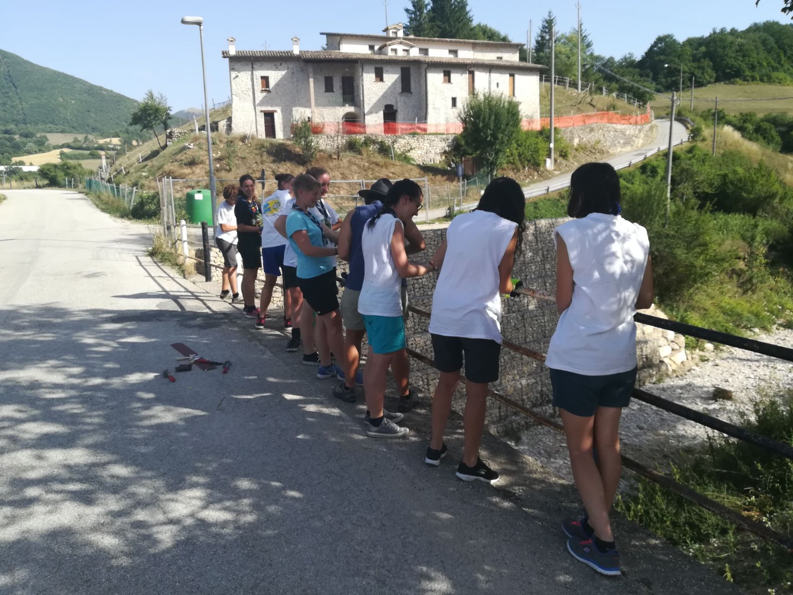 E’ il caso dei Clan veneti del Verona 24 (Route 1a), dell’Oderzo 1 (Route 2a) e del Marostica 1 (Route 5b) che si sono incrociati più volte tra Scheggino, Monteluco, Poggiodomo, Monteleone e Piedipaterno. Insieme hanno condiviso la generosità e l’affetto degli abitanti del posto, contraccambiando con attività di animazione per bambini e anziani. Hanno toccato con mano la disponibilità dell’Associazione Nazionale Carabinieri della Valnerina che dopo una sola telefonata è venuta incontro alle difficoltà di approvvigionamento dei Clan con una generosità davvero esemplare. Hanno celebrato la messa al campo sportivo, hanno scartavetrato il ponte a Ruscio, hanno sistemato la futura base scout di Piedipaterno. Hanno mangiato insieme in riva al fiume Nera e, ciliegina sulla torta nel vero senso della parola, hanno festeggiato insieme agli abitanti del paese i 50 anni del signor Fabrizio.